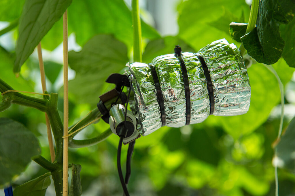 “The service team at 2Grow focuses on providing services to our clients in Belgium and abroad. Interpreting sensor data and taking follow-up action is the most important part of this,” says Maxime. “2Grow supplies sensors that can give growers accurate information about the sap flow and stem diameter. The data which our sensors generate helps in analyzing and assessing the status and development of the plant. Our focus in recent years has been on vegetable cultivation: tomatoes, cucumber, bell pepper and eggplant. But we’re also aware of the sensors’ value in vertical farming, ornamental cultivation (for example for chrysanthemum growers), and even in tree cultivation.”